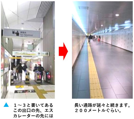 ですので、後のほうの車両に乗ると便利です。(前の車両に乗って元町側の出口に出るとわからなくなるかも)