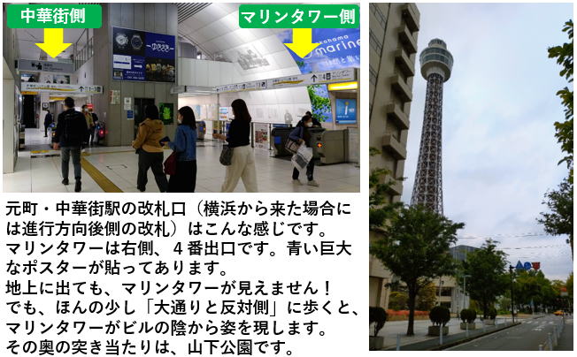 マリンタワーの最寄駅は、元町・中華街駅です。東横線が直通する、みなとみらい線の終点です。横浜駅から8~10分です。