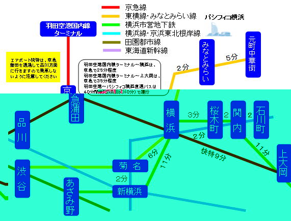 30分あれば、パシフィコ横浜まで到着します。タクシーですと約20分で約3000円です。