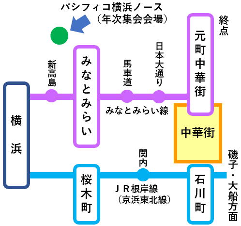 年次集会会場の最寄駅は、みなとみらい駅です。(年次集会会場から徒歩5分と案内されていますが、のんびり歩くと10分)
